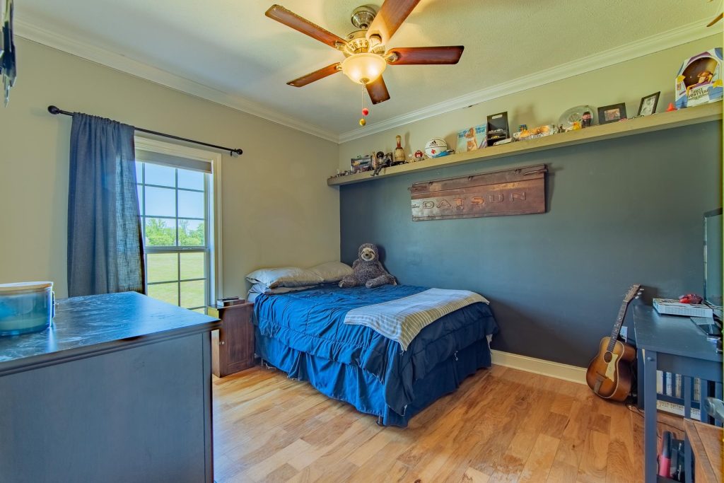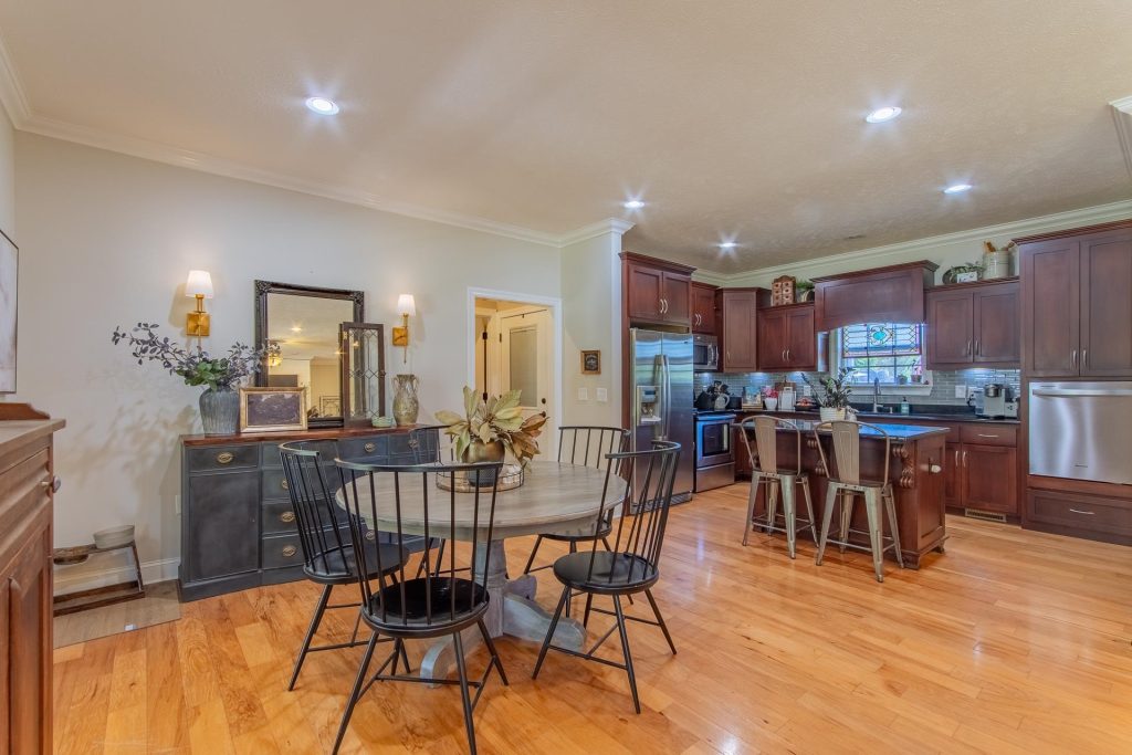 Lovely 3-bedroom, 2-bath brick home in a well-established Adamsville neighborhood. This approx. 1,900 sq. ft. home sits on 5+/- acres and features an open floor plan, beautiful custom kitchen cabinetry, granite countertops, stainless steel appliances, and a stylish tile backsplash. Enjoy hardwood and tile flooring throughout, plus a spacious master suite. The home includes a dedicated office space, covered back patio, fenced yard with two double gates, in-ground ventilated storm shelter, and an extra-wide driveway. A 30×30 shop with water and electricity, plus a 20×50 lean-to, adds versatility. Pristine condition throughout.